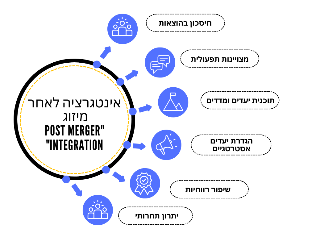 תהליך האינטגרציה (Post Merger Integration –PMI ) הוא שלב קריטי לאחר רכישות ומיזוגים בין חברות. בתהליך זה עשויים לעלות אתגרים שינבעו משוני בתרבות הארגונית, תהליכי העבודה, המטרות העסקיות ועוד. ביצוע התהליך באופן מתוכנן תוך מיפוי וזיהוי האתגרים העתידיים, עשוי להוביל לקבלת סינרגיה ולהבטיח כי החברות השותפות לתהליך ישיגו את מטרותיהן העסקיות באופן יעיל וממועט אתגרים.