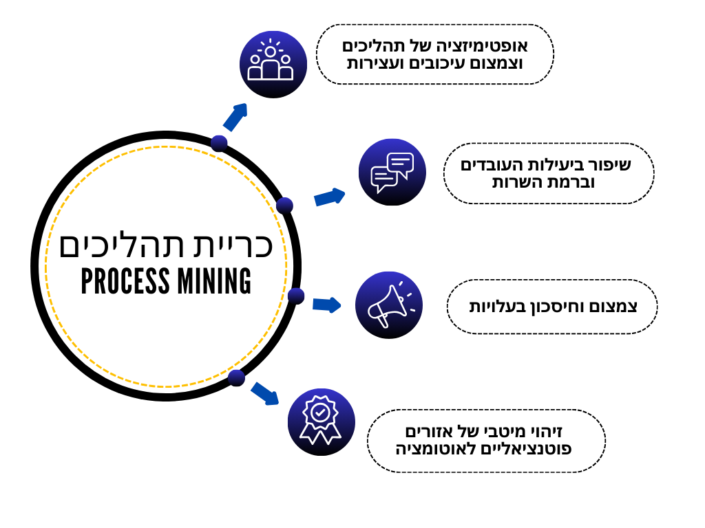 טכנולוגיה זו מאפשרת “צילום רנטגן” של התהליכים העסקיים הרלוונטיים בארגון, מזהה חוסר יעילות ומציעה בתוך פרק זמן קצר כלים לשיפורם.