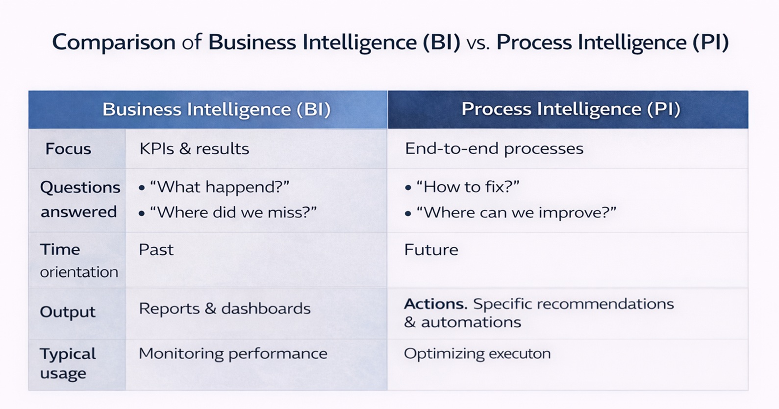 עם כל הכבוד ל-Insights של ה-BI, ה-Execution הוא זה שקובע, ופה נכנס לתמונה התחום החדש יחסית – Process Intelligence (PI).