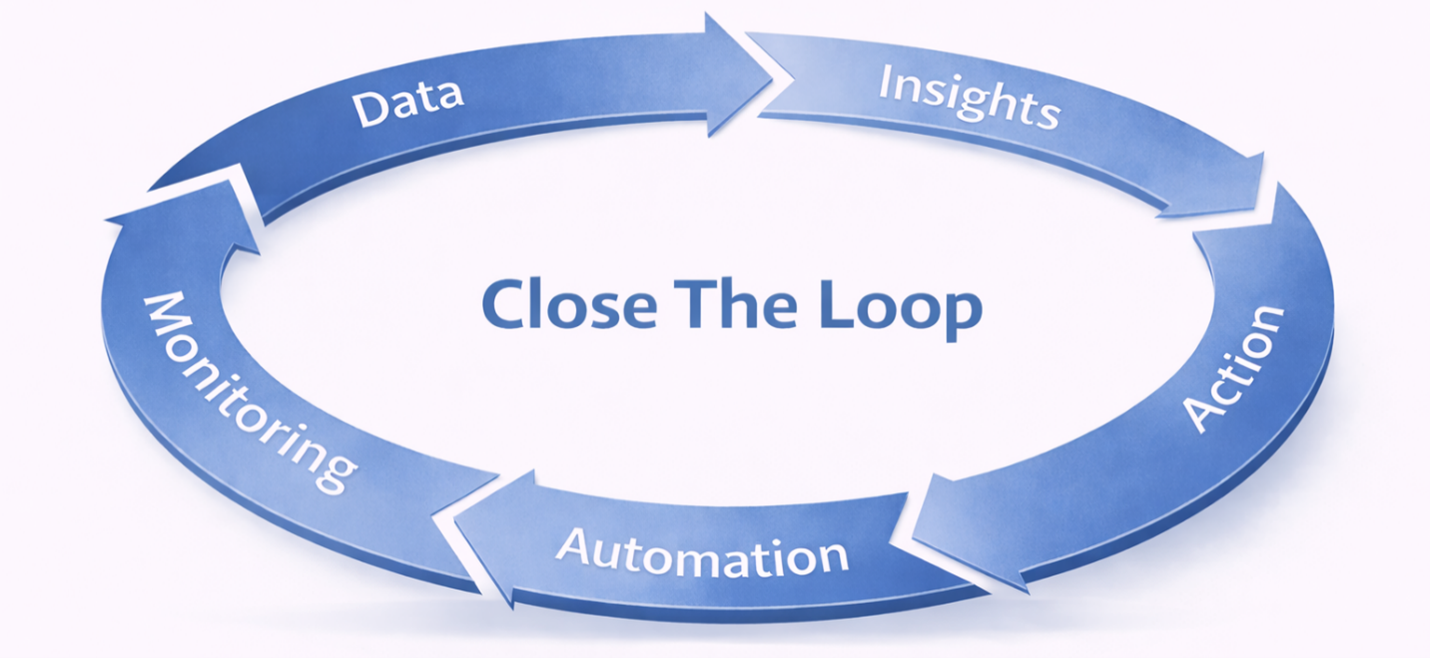 מנתונים > לתובנה  > לפעולה > לאוטומציה  > ולבקרה חוזרת.
